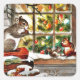 Cute squirrels and chipmunk sit on a window ledge beside a Christmas tree.