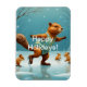 Squirrels on Ice is the perfect kitchen accessory to decorate for the holidays. This beautiful, unique magnet is a one-of-a-kind that is sure to delight young and old! The magnet wishes all 'Happy Holidays!' with a mother squirrel dressed in an icy blue bodysuit and old-fashioned brown ice skates, dancing on a frozen pond. The mother squirrel is surrounded by 3 equally cute baby squirrels, who look on with curiosity and excitement. Set against a backdrop of a winter forest, an icy blue sky, and falling snow, Squirrels on Ice is must-have for Christmas or Hanukkah for you, your family, your friends, or your co-workers! Don't be left out. Be the first on your block to have one. Get yours today!