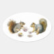 Two squirrels pour tea from a tiny china tea set on these cute stickers.