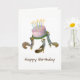A trio of squirrels carry a birthday cake. Fun for card a birthday, congratulations or any happy celebration. "Happy Birthday" or customise to write your own words.