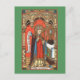 St. Alphonsus Maria de Liguori (1696–1787) was an Italian nobleman, a lawyer turned priest, prolific writer, founder of the Redemptorists, Bishop, and Doctor of the Church. Here, in a chapel setting against a red brick background, he stands wearing his Bishop’s robes—mitre and cope—and carrying his crosier or pastoral staff. His right hand is raised in blessing. In art, when portrayed at an angle to the viewer as in this image, he has a noticeably humped back and a chin tucked into his chest. In May 1768, he had been struck with a terrible attack of rheumatic fever that lasted over a year and left him permanently crippled until his death some twenty years later. For this reason, he is patron saint of rheumatoid arthritics and the aged ill. + Feast: August 1 + Image Credit (SAU 039): Antique image of St. Alphonsus Liguori from a late 19th-century devotional print in chromolithography, originally published by Socièté de St. Augustin, Bruges, Belgium, from the designer’s private collection of religious ephemera.