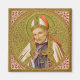 St. Alphonsus Maria de Liguori (1696–1787) was an Italian nobleman, a lawyer turned priest, prolific writer, founder of the Redemptorists, Bishop, and Doctor of the Church. Here, he is portrayed wearing his Bishop’s regalia—white mitre and cope, light violet gloves, blue-violet robe, and gold pectoral cross. He carries his crosier or pastoral staff in his left hand and raises his right hand in blessing. While his torso is shown frontally, his head is turned slightly to the right, the better to show his chin tucked against his chest. In May 1768, St. Alphonsus had been struck with a terrible attack of rheumatic fever that lasted over a year and left him permanently crippled until his death some twenty years later. He spent much of those last twenty years confined to a wheelchair. For these reasons, he is patron saint of rheumatoid arthritics and the aged ill. + Feast: August 1 + Image Credit (SNV 02): Antique image of St. Alphonsus Liguori from a late 19th-century chromoxylographic devotional print originally published by St. Norbertus Verlag, Vienna, Austria, from the designer’s private collection of religious ephemera. + Note Well: This image will work on any of the other products featuring SNV Saints. See, for example, our St. Sebastian COLLECTION (SNV 24).