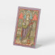 St. Alphonsus Maria de Liguori (1696–1787) was an Italian nobleman, a lawyer turned priest, prolific writer, founder of the Redemptorists, Bishop, and Doctor of the Church. Here, he stands unaided wearing his Bishop’s regalia—gold and white mitre, violet cope with chartreuse lining, and golden pectoral cross. In his hands, he holds a quill pen and an open book. In reality, St. Alphonsus spent much of his later life confined to a wheelchair following a devastating bout of rheumatic fever during his episcopate. Seen frontally in this image, his infirmity is indicated only by his chin being slightly tucked against his chest. + The emphasis here is on St. Alphonsus’s prolific writings. In addition to quill pen and handheld book, a stack of volumes lay at his feet. St. Alphonsus wrote well over one hundred works on theology and spirituality, numerous letters, poems, hymns, and devotionals. In 1871, Pope Pius IX declared St. Alphonsus a Doctor of the Church recommending him to theologians as a master of moral theology. + Feast: August 1 + Image Credit (VVP 005): Antique image of St. Alphonsus Liguori from a late 19th-century devotional print in chromolithography, originally published by K. van de Vyvere-Petyt, Bruges, Belgium, from the designer’s private collection of religious ephemera.