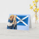 Among his many patronages, St. Andrew is the national patron of Scotland. Here, a pensive St. Andrew, clad in a white robe and blue mantle, leans on a large, wooden x-shaped cross or saltire which was the instrument of his martyrdom c. 70. Behind him is the blue and white Scottish Flag—the St. Andrew’s Cross or The Saltire—which is the oldest national flag in the British Commonwealth and the oldest in Europe. + Feast: November 30 + Image Credit (P 006): Figure extracted from an antique image of St. Andrew the Apostle from a late 19th-century devotional print in chromoxylography, originally published by Friedrich Pustet, Regensburg, New York, and Cincinnati. From the designer’s private collection of religious ephemera. + Image Credit (Flag): Flag of Scotland, Public Domain, Wiki Commons.