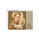 St. Anthony of Padua (1195-1231) is one of the Church’s most popular saints. First introduced as an artistic motif in the 17th century, St. Anthony holding the Christ Child has been translated into all manners of artistic media across the globe, especially wherever Franciscan missionaries have spread the Word. In this splendid depiction, the Christ Child kneeling on a book (another of St. Anthony’s attributes but not visible here) reaches up to embrace him while St. Anthony, clad in the traditional brown Franciscan habit, gazes at the toddler Jesus with wonder and love. + Feast: June 13 + Image Credit (JM 05): Detail of an antique image of St. Anthony of Padua, originally published in chromolithography by Josef Müller Art Publisher, Munich and New York, first quarter of the 20th century, from the designer’s private collection of religious ephemera. This is just one of over sixty images in a very popular style of devotional prints issued in several sizes and formats by Müller at the turn of the last century. + Prefer a different colour combination? See the Colour Palette postcard for recommended hues. Colour Palette postcards are found in an image's associated COLLECTION and in the Special COLLECTION devoted just to colour palettes.