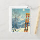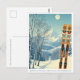 Servus from the snowy mountains of St. Anton, Austria, in Europe! We hope you're having a wonderful ski vacation. This postcard features a gorgeous blue-grey mountain landscape with retro ski boards in an orange tribal pattern.