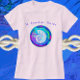 Colourful St. Augustine Florida sea shell shirt. This fun souvenir features a conch style shell. The sea shell is framed with amazing ocean blues, pinks, green, and purple.