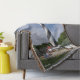 A quality printed throw has its advantages. This is a much finer weave throw than its loopier cousins, and though lighter, it is worth the investment for custom room accessorizing. The back is much prettier than the typical brown, and the fringe on the long sides very vivid, the selvage nicely done. Before photographing, I washed the throw in cold water, delicate, with a thicker woven throw the same size. On tumble dry low, this throw was dry in half the time as the other. This is a very practical quality if you use throws for furniture covers or to wrap up in frequently. The sleekness of the fabric makes it a great layer for accenting or protecting without the feeling of sitting on too much stuff. Perfect for napping or when you feel a light chill coming on. The color printing is beautiful and on this fabric, matched the design and color of my Photoshop image. This is an advantage for blending room fabrics and colors. The fringe on the short sides prints the colors from the design image and therefore varies from the side fringe. I streaked a white fractal line through the plaid pattern to give the illusion of weaving. This printed as crisp as an illusory thread, and put some white in the short side fringe, showing another advantage of print vs loomed- for artistic purposes, line lines, detail, and color integrity can be planned and preserved. My loomed throws have color limitations and more of a needlepoint texture. Print throws reproduce an exact image. The throw felt a little stiff straight out of the package, but this went away in the first delicate wash. Of course I searched the wash water for ink or bleeding and there was none.