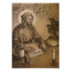 Reproduction of a charcoal drawing by A.R. Danziger. St. Benedict writing his Rule in his cell with the raven that brought him bread and the snake warning him of the poisoned chalice.