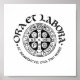 An inspirational poster featuring a print of A.R. Danziger's hand calligraphy of St. Benedict's motto and drawing of a St. Benedict medal. The uncial script reads "Ora et Labora" (pray & work) and "St. Benedicte, ora pro nobis" (St. Benedict, pray for us).