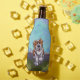 Animal Parade Cute St. Bernard Dog Bottle Cooler created by Imagine That! Design features our cute tan and white dog character standing in a grassy yard with a red brick fence, a textured blue sky and a playful wavy purple border painted by our talented children's book artist, Traci Van Wagoner. The fun pup stands in play position with one paw raised. This fun pet art is perfect for St. Bernard dog lovers and humourous animal art lovers of all ages. On many of our whimsical St. Bernard doggy products you'll find this cute puppy coming and going with the playful Saint Bernard dog's head on one side and the funny dog's tail on the other. Join the Animal Parade and bring a smile to the face of someone you love with a gift of our cute St. Bernard dog. Woof!