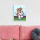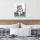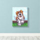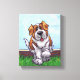 Animal Parade Cute St. Bernard Dog Canvas Print created by Imagine That! Design features our cute tan and white dog character standing in a grassy yard with a red brick fence, a textured blue sky and a playful wavy purple border painted by our talented children's book artist, Traci Van Wagoner. The fun pup stands in play position with one paw raised. This fun pet art is perfect for St. Bernard dog lovers and humourous animal art lovers of all ages. On many of our whimsical St. Bernard doggy products you'll find this cute puppy coming and going with the playful Saint Bernard dog's head on one side and the funny dog's tail on the other. Join the Animal Parade and bring a smile to the face of someone you love with a gift of our cute St. Bernard dog. Woof!