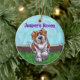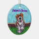 Animal Parade Cute St. Bernard Dog Christmas Ornament created by Imagine That! Design features our cute tan and white dog character standing in a grassy yard with a red brick fence, a textured blue sky and a playful wavy purple border painted by our talented children's book artist, Traci Van Wagoner. The fun pup stands in play position with one paw raised. This fun pet art is perfect for St. Bernard dog lovers and humourous animal art lovers of all ages. On many of our whimsical St. Bernard doggy products you'll find this cute puppy coming and going with the playful Saint Bernard dog's head on one side and the funny dog's tail on the other. Join the Animal Parade and bring a smile to the face of someone you love with a gift of our cute St. Bernard dog. Woof!