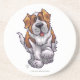 Animal Parade Cute St. Bernard Dog Sandstone Drink Coaster created by Imagine That! Design features our cute tan and white dog character standing in a grassy yard with a red brick fence, a textured blue sky and a playful wavy purple border painted by our talented children's book artist, Traci Van Wagoner. The fun pup stands in play position with one paw raised. This fun pet art is perfect for St. Bernard dog lovers and humourous animal art lovers of all ages. On many of our whimsical St. Bernard doggy products you'll find this cute puppy coming and going with the playful Saint Bernard dog's head on one side and the funny dog's tail on the other. Join the Animal Parade and bring a smile to the face of someone you love with a gift of our cute St. Bernard dog. Woof!