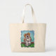 Animal Parade Cute St. Bernard Dog Jumbo Tote created by Imagine That! Design features our cute tan and white dog character standing in a grassy yard with a red brick fence, a textured blue sky and a playful wavy purple border painted by our talented children's book artist, Traci Van Wagoner. The fun pup stands in play position with one paw raised. This fun pet art is perfect for St. Bernard dog lovers and humourous animal art lovers of all ages. On many of our whimsical St. Bernard doggy products you'll find this cute puppy coming and going with the playful Saint Bernard dog's head on one side and the funny dog's tail on the other. Join the Animal Parade and bring a smile to the face of someone you love with a gift of our cute St. Bernard dog. Woof!