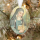 You have several options here: 1) Leave the ornament as is with its default text. 2) Change just the text leaving the ornaments in place. 3) Hide or delete both the text and ornamental images to reveal a blank, solid-coloured area ready to receive a picture, a greeting, a Biblical passage, or any other text of your choosing. To choose a new background colour, see the suggested coordinating hues on the Colour Palette postcard for this image. Colour Palette postcards are found in an image's associated COLLECTION and in the Special COLLECTION devoted just to colour palettes. 4) Unhide the image of the featured saint so the same image appears on both the front and back of the ornament. + Ornaments: St. Brigid Crosses (traditional). + Image Source (M 014): Antique image of St. Brigid of Ireland from a 1906 devotional print in chromolithography originally published by A. & M. B. [Albrecht & Meister of Berlin], Germany. From the designer’s collection of religious ephemera. + Feast: February 1