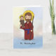 St. Christopher is painted in a simple manner. He he is holding Jesus and carries a staff in his hand. The watercolor looking background references the river he is crossing as he carries the Christ child. Send blessings on the St. Christopher’s Day. Perfect for adult or young person. His feast day is celebrated on July 25, but this can be sent at any time, but changing the inside message.