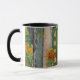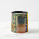 This decorative mug features a wraparound adaptation of a fine art painting of a small street in St. Croix, Virgin Islands, by the American artist, Anna Unterman. The bright, sunny scene is a riot of colours. There are orange flame vines and other green shrubs and leaves. The colourful buildings are yellow, gold, blue, red, black and green. Reprinted with permission from the estate of Anna Unterman. All rights reserved.