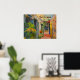 This travel poster features an adaptation of a fine art painting of a small street in St. Croix, Virgin Islands, by the American artist, Anna Unterman. The bright, sunny scene is a riot of colours. There is a red, pink and magenta bougainvillea vine over the archway as well as orange flame vines and other green shrubs and leaves. The colourful buildings are yellow, gold, blue and green. Text can be customised or removed. Reprinted with permission from the estate of Anna Unterman. All rights reserved.