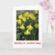 A greeting card for St David'sDay with a photograph of a clump of daffodils on a wide white border and 'Happy St David's Day' written in red in a celtic script. Blank inside for your own message.