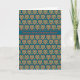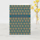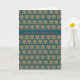 A pretty Greeting Card for St Dwynwen' s Day with a pattern of red and green hearts in a Folk-art style on a dark blue background and 'Happy St Dwynwen's Day' in Welsh.