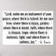 “Lord, make me an instrument of your peace; where there is hatred, let me sow love; where there is injury, pardon; where there is doubt, faith; where there is despair, hope; where there is darkness, light; and where there is sadness, joy.”
