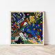 St. George I (1911) by renowned Russian painter Wassily Kandinsky is an early example of his exploration of abstraction and symbolism. The artwork depicts the legendary figure of St. George, typically associated with overcoming a dragon, but through Kandinsky's abstract lens. The piece is chraacterised by bold, dynamic shapes and vivid colours, reflecting his transition from figurative art to a more abstract style. Kandinsky's use of intense contrasts and forms captures the energy and symbolism of the narrative while embracing the emotional power of abstraction.