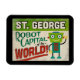 A charming St. George Utah vintage travel refrigerator magnet featuring a funny and friendly robot, along with fun retro style text that says, "See you in St. George"