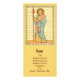 Customise the front for your church, school, or organisation and add your text to the blank back of this versatile hand-out.   +   Image Source (RLS 05):  Antique image of St. James the Great(er) in chromolithography with gilt accents from Red Letter Saints:  Being a Series of Biographies of those Saints for which Proper Collects, Epistles and Gospels are appointed in the Book of Common Prayer.  Printed by E. Kaufmann, Lahr, Baden, Germany, for the Society for Promoting Christian Knowledge / S.P.C.K.  (London, 1911), p. 50.  From the designer’s private library.   +  Feast:  July 25   +   Text is in dark red-brown (#460000) which matches the figure's outline.   +   The ‘Red Letter Saints’ palette is the same for all nineteen images from the book with minor variations.  It consists of the following colours (with hex codes):  cream (#FEEFBE), medium yellow (#F1D168), medium yellow-green (#999954), medium light aqua (#ACCBB1), medium dark aqua (#8CAC98), mauve (#E6BEA5), salmon pink (#FAAE8B), peach (#F5BD94), brownish orange (#E48B11), beige (#E8C6A1), dark gold (#87722E), and dark red-brown (#460000).  Choose as you will!