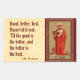 Formally known as Eusebius Sophronius Hieronymus in Latin, St. Jerome (c. 347-420) was born to wealthy pagan parents of Illyrian descent at Stridon, a town now lost to history that was once located near the Adriatic coast in either northeast Italy or the Balkans. As a teenager in Rome, he lived a dissolute lifestyle he would later come to bitterly regret. Baptised in 365, he became a nominal Christian and studied law. Widely travelled and well-educated, he experienced a vision during an illness c. 373/4 that turned him from secular pursuits to the serious study of theology and a life of ascetic repentance. He became a monk, priest, secretary to a pope, theologian, and historian. In 388, he settled at last in Palestine and spent the remainder of his life working in a cave near Bethlehem, the very cave where Jesus was believed to have been born. The result was the work for which he is best known: his translation of most of the Bible into Latin--the translation known as the Vulgate--and his commentaries on the Gospels. One of the most learned men of his day, St. Jerome is a Doctor of the Church and—with SS. Augustine, Ambrose, and Gregory I the Great–one of the Four Latin Church Fathers. He died of old age. + It was during his tenure as secretary to Pope Damasus I (c. 305-384) that St. Jerome earned his red robes and Cardinal’s hat as pictured here… in art and literature, at least. The office of Cardinal as such did not exist in the late fourth-early fifth century; hence, his garb is anachronistic. However, in the Middle Ages, the most widely read and most influential book--after the Bible, of course--was The Golden Legend (or Legenda Aurea Sanctorum) by Bl. Jacobus de Voragine (c. 1226-1298). Accustomed to a Papal Secretariat staffed with Cardinals in his time, Voragine erroneously wrote that St. Jerome “was ordained a Cardinal Priest in the Church of Rome.” Contemporary artists retrofitted St. Jerome accordingly, and a Cardinal’s dress became ever after one of the established features of his iconography. (We particularly like the rakish angle at which St. Jerome wears his galero in this late 19th-century devotional print--even if it is due to the tilt of his head as he reads from one of his books!) + The lion at St. Jerome’s feet is another symbol often associated with him. According to tradition (read: The Golden Legend again), during his sojourn as a monk in the Syrian desert, St. Jerome earned the trust and eternal gratitude of a lion by removing a thorn from its paw. The lion became his devoted companion. + St. Jerome is patron saint of archaeologists, librarians, archivists, translators, students, and Bible scholars. + Feast: September 30 + Image Credit (P 004): Antique image of S. Hieronymus [St. Jerome] from a late 19th-century devotional print in chromoxylography, originally published by Friedrich Pustet, Regensburg, New York, and Cincinnati. From the designer’s private collection of religious ephemera.