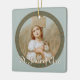 This is a lovely ornament, and great that you personalise the back with details of birthday, weight, etc.. My only tiny disappointment is the "My First" doesn't stand out very well on the background. More than happy with the printing of the photo and the writing on the back.