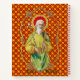 Trade cards are a kind of early business card. Originally, they were printed only with text; later, pictures were added. In the late 19th-early 20th century, religious images appeared on trade cards alongside images of animals, vegetables, and minerals; historical figures and monuments; flowers and sundry other items or events. Trade cards were handed out as marketing tools or packaged as prizes with pharmaceuticals and candies as well as perfumes, meat products, tapioca pudding, and more. With an advert on the back and, more importantly, a vibrant image printed in chromolithography on the front, small wonder collecting trade cards became a hobby in the 19th century much like collecting bubblegum- and baseball trading cards would become later in the 20th. + One of the most popular sets of religious trade cards valued even by collectors today consists of twenty-four patron saints of professions. On such trade cards, a framed portrait of the patron saint is flanked by a representation of the relative tradesmen going about their tasks. Space permitting, the saint’s bio might even be printed on the back. + Though printed in Paris to advertise ‘Star Tapioca’ (Tapioca de L’Étoile), the St. Joseph in this example is clearly a variant of the aged St. Joseph, Patron of The Church, published as a devotional print by the Socièté de St. Augustin of Bruges, Belgium. (See our SAU 035 COLLECTION.) In fact, many of the saints in this series rely on Socièté de St. Augustin prototypes. In a less litigious age, the production of such derivative works was not uncommon. Not visible here are the carpenters (charpentiers) and slate-quarriers (ardoisiers) who labour under St. Joseph’s patronage. + In an ornate frame against a patterned backdrop of red and golden yellow, St. Joseph is clad in a yellow robe and green mantle. His hair has gone white. He holds an L-shaped carpenter’s rule emblematic of his profession in his right hand. In his left, instead of the more usual spray of white lilies of purity in full bloom, he holds a leafless stem of pink flowers that may be intended to represent spikenard. Spikenard is another flower associated with St. Joseph especially in Spanish-speaking countries. Given its funerary associations—spikenard was used in antiquity to anoint the dead—the flower may allude to St. Joseph’s approaching demise. In addition to his patronage of The Church and of artisans, St. Joseph is patron saint of the dying. He is invoked by the faithful for a happy and holy death. + The Year of St. Joseph: 8 December 2020-2021 December 8; Principal Feast: March 19; Feast of St. Joseph the Worker: May 1 + Image Credit (TC 01): St. Joseph, detail from an antique trade card in chromolithography, originally published by E. Pelletier & Cie, Paris, France, for Tapioca de L’Étoile, early 1900s, from the designer’s private collection of religious ephemera.