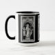 This black-and-white image is an 1889 elaboration of an 1878 prototype in chromolithography. (See our full colour goldprint of St. Joseph, Protector of the Church, COLLECTION [VVP 09]). Its publication coincided with the promulgation of a “Prayer to St. Joseph” authored by Pope Leo XIII. It was included in his encyclical known from its opening words in Latin as “Quamquam Pluries”, that is, “Although Many Times…” about devotion to that saint. + Here, St. Joseph is depicted against a starry night sky within an ecclesiastical architectural framework Gothic in style. He holds a spray of lilies symbolising purity in his right hand and an L-shaped carpenter’s rule indicative of his profession in his left. + In addition to these traditional attributes, however, several elements of the composition speak directly to his role as patron of the Church including, most notably, several Latin texts. On the left, a descending angel unfurls a scroll that reads: “Anno Domini 1870 die VIII decembris, Pius PP.IX, beatum patriarcham Josephum Ecclesiae catholicae patronum solemniter declaravit”, that is, “In the Year of our Lord 1870 on the eighth day of December, Pope Pius IX solemnly declared the blessed patriarch Joseph patron of the Catholic Church”. On the right, in the field above another descending angel is a banderole that reads: “Constituit me dominum” then upside down “domus sua(e)”, or “He appointed me overseer of his own house”. While not a direct quotation from the Latin version of the Bible known as the Vulgate, this text recalls Genesis 39.4 and Genesis 41.40. Those two verses refer to St. Joseph’s Old Testament forerunner Joseph of the Coat of Many Colours who was put in charge first of Potipher’s, then of Pharaoh’s, household during his sojourn in Egypt. And, inscribed in his halo are the words “Sancte Joseph:Patronus Ecclesiae:OPN [Ora Pro Nobis]”, that is, “Saint Joseph, Patron of the Church, Pray For Us”. + Visual elements reinforce the verbal. The second descending angel displays a generic papal coat of arms featuring the three-tiered crown or tiara of the Pope and two crossed keys, the "keys to the Kingdom of Heaven" (Matthew 16:19). Emanating from the shield, rays of light point to a small dragon, a crown, a scroll, and a globe inscribed with the names of the populated continents—Asia, Australia, (North and South) America, Africa, and Europe. The dragon signifies Satan; the scroll reads: “Non serviam”, that is, “I will not serve”, a phrase that sums up Satan’s rejection of God. (In some press runs, the word ‘Liberalism’ appears below Satan’s words.) The towering figure of St. Joseph tramples out Satan’s power over the world by crushing the dragon beneath his feet toppling the crown from the dragon’s head. + Red is the traditional accent and border colour for devotional prints in this style. + This image exists in several variations: with or without frames (frames, where they exist, range from a simple red box to multi-element printer’s embellishments), with or without red accents, with the words ‘Ora pro nobis’ spelled out or abbreviated, and with or without the word ‘Liberalism’ in Satan’s scroll as already noted. +