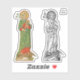 The figures on these stickers were extracted, respectively, from a c. 1890 chromolithograph and an 1889 black-and-white litho. In both cases, St. Joseph is portrayed in his role as protector of The Church. The towering figure of St. Joseph, much larger and grander than the dragon, tramples out Satan’s power over the world by crushing the dragon beneath his feet and toppling the crown from the dragon’s head thus ending Satan’s dominion over humankind. + Principal Feast of St. Joseph: March 19; Feast of St. Joseph the Worker: May 1 + Image Credits for Extracted Figures (Left - VVP 009): Antique chromolithograph of Saint Joseph, Protector of the Church, Pray For Us [H. Jozef, beschermer der H. Kerk, B.V.O.] originally published by K[arel] v[an] d[er] Vyvere-Petyt, Bruges, Belgium, c. 1890; (Right - DL 01): Antique lithograph of Sancte Joseph, Patronus Ecclesiae [Saint Joseph, Patron of the Church], originally published by Desclée, Lefebvre et Cie, Tournai, Belgium, 1889. Both original devotional prints are from the designer’s private collection of religious ephemera.