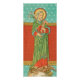 Add your text to the back of this versatile blank hand-out. + Here, a mature, grey-haired St. Joseph stands atop a globe in front of a red wall hanging with golden yellow trim and tassels. The tapestry is patterned with equal-armed crosses enclosed in rotated squares. How it is hung defies logical explanation because the background consists of an infinitely deep aqua-blue sky bespattered with stars. + St. Joseph is richly garbed in strong colours. His robe is red; his mantle, green with a dark aqua lining and golden yellow borders. He holds a spray of white lilies symbolising purity in his right hand and an L-shaped brown wooden carpenter’s rule indicative of his profession in his left. + Beneath St. Joseph’s sandaled feet are a small dragon, a crown, a scroll, and a globe inscribed with the names of the populated continents—Asia, Australia, (North and South) America, Africa, and Europe. The dragon and the scroll represent threats to the Church. The dragon signifies Satan; the scroll, heresies by being a précis of Blessed Pope Pius IX’s 1864 Syllabus of Errors, a document articulating 19th-century philosophical and political positions hostile to Catholicism. The scroll reads: Non serviam (“I will not serve”) / Atheismus (Atheism) / Odium Ecclesiae (Hatred of the Church) ~ S. Pontifice (The Pope) ~ Episcopi (Bishops) ~ Presbyteri (Priests) / Liberalism. The phrase “Non serviam”, that is, “I will not serve”, is attributed to Satan who rejected God and was banished from heaven. Atheism, Anticlericalism, and Liberalism are self-explanatory and were movements that shaped Pius IX’s policies, especially regarding the unification of Italy and its rise as a modern nation-state. The towering figure of St. Joseph stamps out heresy and tramples underfoot Satan’s power over the world by crushing the dragon beneath his feet toppling the crown from the dragon’s head. + A much more elaborate, near-contemporary variant was issued as a black and white lithograph. (Compare our DT 01.) Like the black-and-white litho, this chromo- or colour lithograph was published to promulgate Pope Leo XIII’s “Prayer to St. Joseph” of 1889. + Principal Feast of St. Joseph: March 19; Feast of St. Joseph the Worker: May 1 + Image Credit (VVP 09): Antique chromolithograph of Saint Joseph, Protector of the Church, Pray For Us [H. Jozef, beschermer der H. Kerk, B.V.O.] originally published by K[arel] v[an] d[er] Vyvere-Petyt, Bruges, Belgium, c. 1890, from the designer’s private collection of religious ephemera.