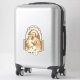 This beautiful contour sticker features a traditional Catholic image of St. Joseph with the Child Jesus on a decorative gold background.