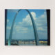 A jigsaw puzzle featuring a photo of the Arch with the Mississippi River flowing nearby.