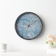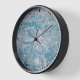 The size of the clock is dramatic and the abstract alcohol ink design is soothing and intricate at the same time. I chose the black frame that adds pop to the blue and gold design. The gold printing would be better in a slightly darker or larger font. I love it and I’m looking for just the right place in ny new apartment. I would recommend this clock for a personal gift or a present. I feel that the quality is excellent for the money! I’m a bit of a clock nut so I’m pretty particular about my purchases. The clock is larger in diameter than many if the clocks I have, so it stands out very well. I think a slightly darker printing color and a moderately larger size would best suit a professional decor or add more impact in a work place item.
