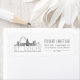 This label features a stylised illustration of the city's unique skyline with its name underneath.