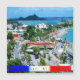 Wonderfully colourful, panoramic view of Marigot Bay taken from Fort St. Louis. The text uses the colours of their flag.