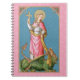 Waiting for baby? Journal your thoughts as you anticipate the blessed event in this lovely notebook featuring St. Margaret on the cover! + According to tradition, St. Margaret (or St. Marina the Great Martyr) laid down her life for Christ during Diocletian’s persecution at the beginning of the fourth century. Though a famous virgin martyr, ironically she is patron saint of expectant mothers and women in labour. The devil in the guise of a dragon, as this unusual patronage’s origin story goes, swallowed her whole. However, the cross she was carrying so irritated the dragon’s innards that he either egested her or ruptured to be rid of her. While even Mediaeval popes and hagiographers deemed this story fanciful, nevertheless, it was embraced by the laity and by artists if only for its symbolism. And, the cross and the dragon have been her principal attributes ever since. + This image of St. Margaret is particularly fetching. The saint, whose beauty was legendary, stands on the back of a large green dragon that tugs at her cloak with its teeth. She is crowned with a garland of roses, her long blonde hair flowing over her shoulders. She wears a bright pink mantle over a white tunic against a blue background patterned with little white dots and stars. + This product line emphasizes St. Margaret’s patronage of pregnancy and childbirth. The dominant pink and blue colour scheme ties in well with the modern custom of using these colours for girl and boy babies. The mantle’s golden yellow lining allows for a gender-neutral theme. + Feast: July 20 +