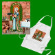 St. Martha of Bethany (1st century) appears perhaps three times in the Gospels: preparing two (separate?) dinners (Luke 10:38-42 and John 12:1-3) as well as witnessing the raising of her brother Lazarus from the dead (John 11:1-45 passim). Admittedly, she seems somewhat prickly and no-nonsense in Luke where she rebukes her sister Mary for neglecting her household duties by sitting and listening to Jesus teach and in John where she chides Jesus for coming late to Lazarus’ funeral. But what hostess wouldn’t be stressed out by the appearance of at least thirteen extra guests for dinner even if they were Jesus and His Twelve Apostles? And what woman wouldn’t be stressed out by the illness and death of a beloved brother seemingly ignored by a dear friend of the family? St. Martha was only human and she is best remembered from the New Testament as the quintessential example of hospitality. At the more celebratory dinner at Bethany in John 12:1-3, the author simply states: “and Martha served” (in Greek: καὶ ἡ Μάρθα διηκόνει...). Martha’s charism, her way to live out the Gospel in relation to the world around her, was to attend to her domestic responsibilities to family and friends to the best of her abilities out of love. Thus, she has come to symbolise the active life (vita activa) of religious communities and the laity. + The figure of St. Martha here has been extracted from the central panel of a triptych altarpiece painted in 1503 by an anonymous Middle Rhenish artist. This panel depicts the dinner mentioned in John 12:1-3 that took place in Bethany after the raising of Lazarus and just before Jesus arrived in Jerusalem on Palm Sunday. Donated by Canon Peter Lutren, the triptych still graces the Martha altar in the southern choir of the Church of Our Lady (Liebfrauenkirche) at Oberwesel, Rhineland-Palatinate, Germany. (See our Dinner at Bethany COLLECTION for the full image, additional information, and related items for purchase.) + While the saint’s figure, some of the crockery, the large breadbasket, and various foodstuffs are derived from the painting, other elements are pics from Pixabay that have been repurposed and reworked resulting in a pastiche that is a Saints_Aplenty exclusive. Tongue in cheek, rather than ancient sandals or the turned Mediaeval shoes with pointed toes that she wears in the original painting, Saints_Aplenty has given St. Martha comfy athletic shoes on our aprons especially for waitstaff. Her footwear is of the type a 21st-century waitress might wear--only in powder blue with bright aqua shoelaces that match her ensemble! As she returns to her kitchen moving leftward (we’ve flipped the image), St. Martha can carry an empty platter, fish scraps, or dirty dishes. The choice is yours. Go into the Design Tool and hide and/or unhide the version you prefer! (Here we have chosen the empty platter.) + St. Martha is the third saint featured in our Apron Series. She is patron of single laywomen, homemakers, restaurant workers, cooks, and the hospitality industry in general. She shares a feast day with her siblings St. Mary of Bethany (not to be confused any longer with the Magdalene) and St. Lazarus on July 29. + Special Image Credit (extracted figure of St. Martha): Photo by Rolf Kranz of a public domain painting that is well over 100 years old from WikiMedia Commons (By Rolf Kranz - Own work, CC BY-SA 4.0, https://commons.wikimedia.org/w/index.php?curid=106002864).