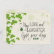 Saint Patrick's Day flat card depicts a design of green shamrocks. It features an Irish Blessing, "May love and laughter light your days." The greeting, prayer can be personalised or deleted for a hand written message and the card used for many occasions.