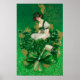 St. Patrick Day Souvenir Woman on Clover Scene Poster