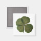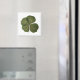 Photograph of a real four-leaf clover on white square magnet. Get Lucky and don't forget the whole collection.