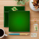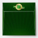 St. Patrick´s Day illustration: A golden coin with a shamrock and ribbon on a green background. Matching invitation for this envelope: