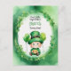 Join us for a St. Patrick's Day-inspired first birthday celebration with this charming postcard invitation. The enchanting watercolor clover wreath-frame and cute leprechaun baby set the stage for a lucky and memorable day.