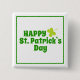 St Patrick's day button with a green shamrock and green borderline. Green Happy St. Patrick`s day text. For your St. Patrick`s day party or a perfect gift.