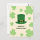 Send festive greetings with this St. Patrick’s Day postcard featuring a classic leprechaun hat surrounded by lucky shamrocks. A perfect way to celebrate the holiday and share Irish cheer with family and friends. Ideal for party invitations, seasonal greetings, or decorative keepsakes.