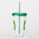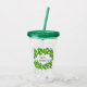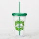This acrylic tumbler has it's own lid and straw. Shown in green with a mess of shamrocks and text of Happy St. Patrick's Day on both front and back.